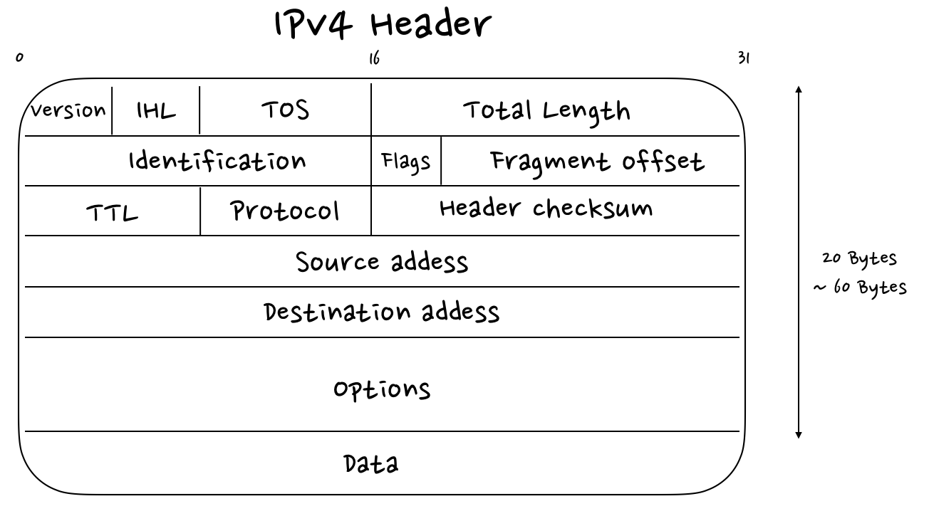 - 이론적 한계(64KB) : IP 헤더의 '총 길이(Total Length)' 필드는 16비트이므로, IP 패킷의 최대 크기는 2