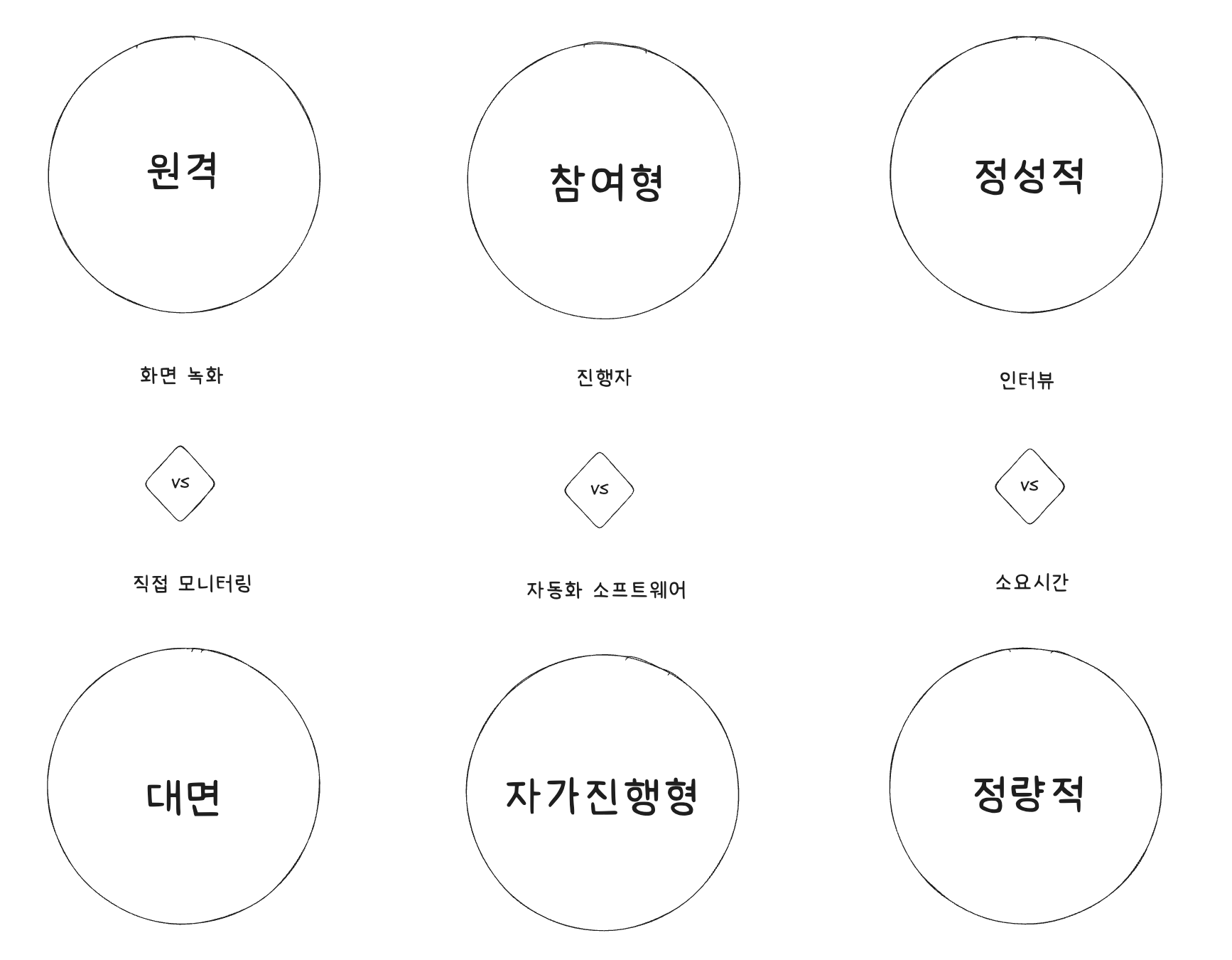 - 참여형(Moderated) : 진행자가 실시간으로 과제를 부여하고, 질문을 던지며 심층적인 답변을 끌어냄